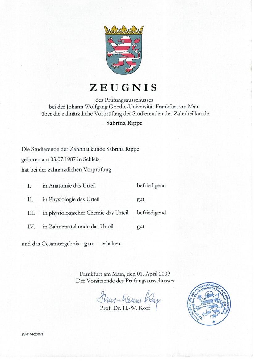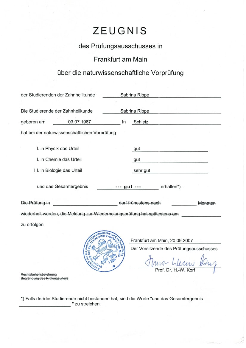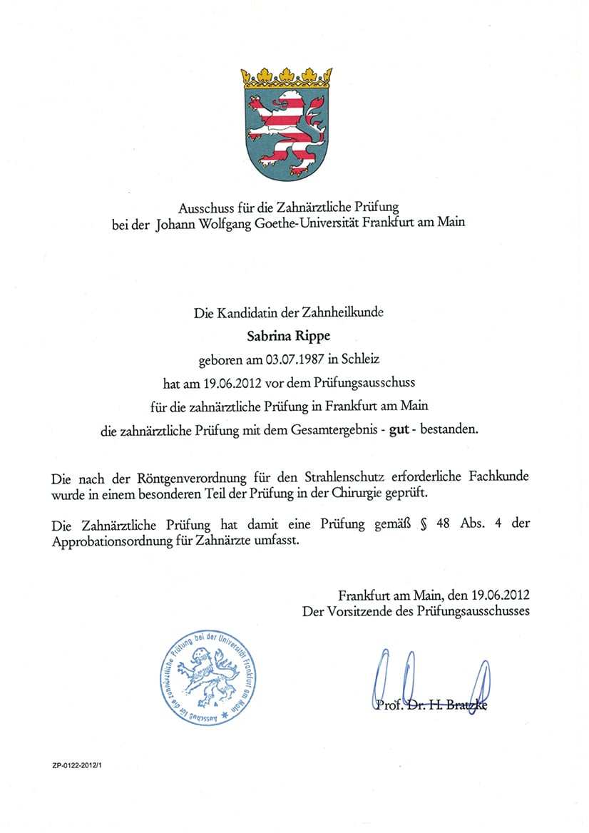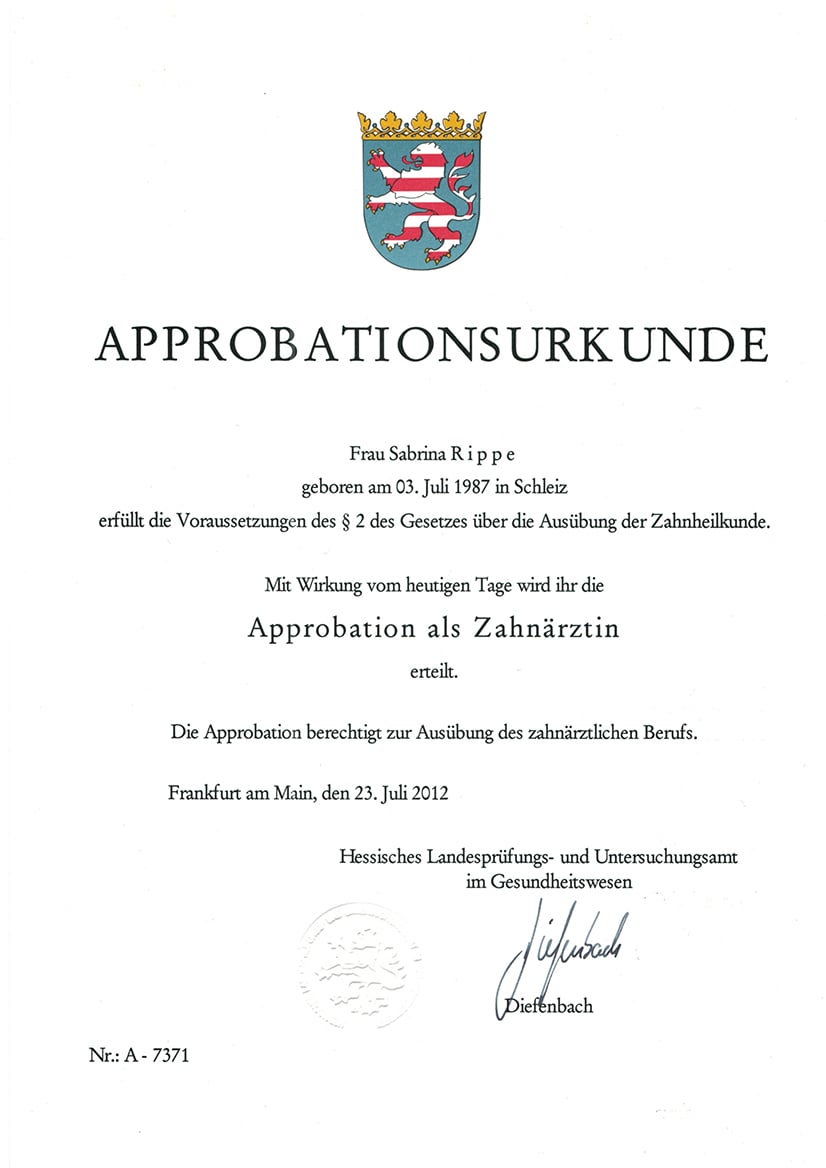 Approbation im Juli 2012 erhalten