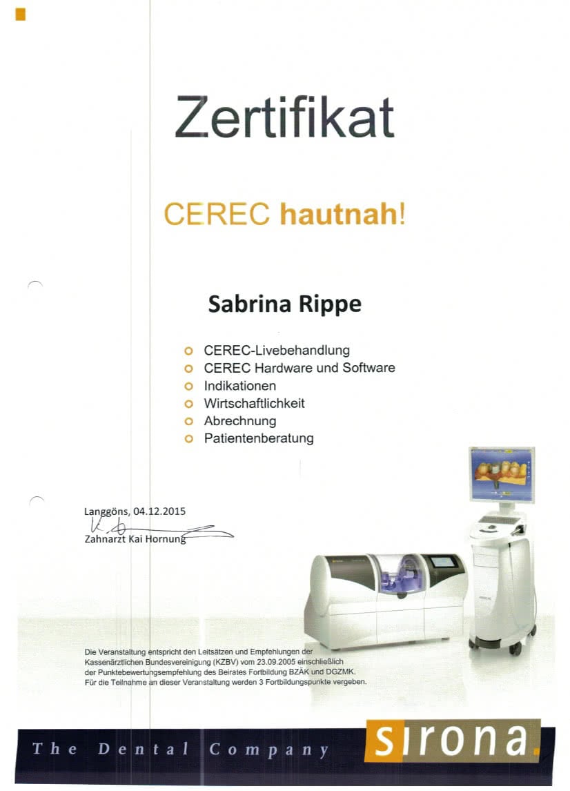 Bei dieser Arbeit erlernte ich den Umgang mit der CERE Omnicam und bekam einen Einblick in den zahnärztlichen und zahntechnischen Workflow der CAD/CAM-Technologie.