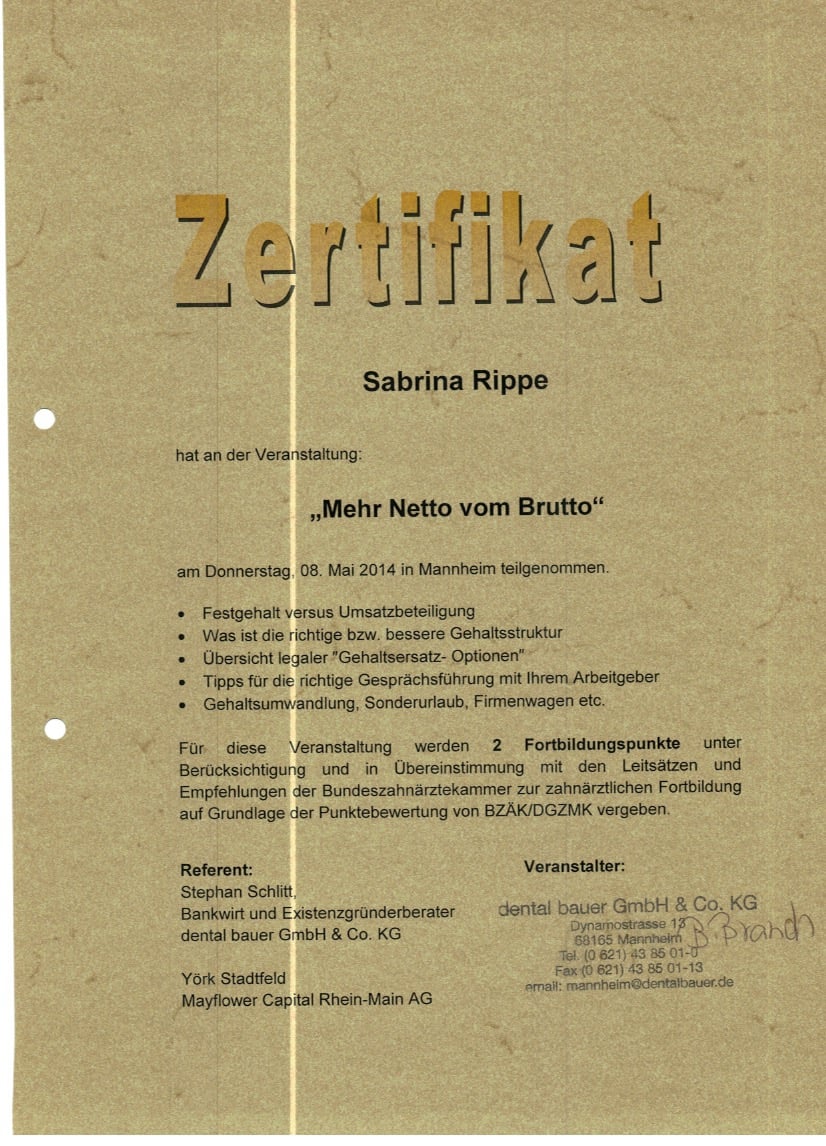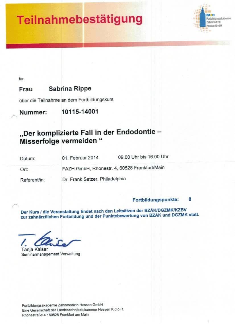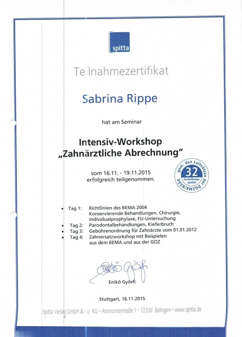 - eigenständige zahnärztliche Abrechnung